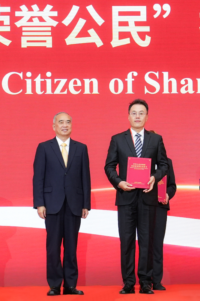 9月29日,中华人民共和国成立76周年山东省庆祝活动在山东大厦金色大厅举行。省委书记林武,省委副书记、省长周乃翔等省领导出席活动。会上,宣读了2025年“山东省荣誉公民”授予决定,授予18人“山东省荣誉公民”。学校韩国籍教授韩钟镇获此称号并作为代表之一现场接受林武书记颁发证书。活动期间,韩钟镇还参加了由山东省委外办组织的国际友人建言献策座谈会。