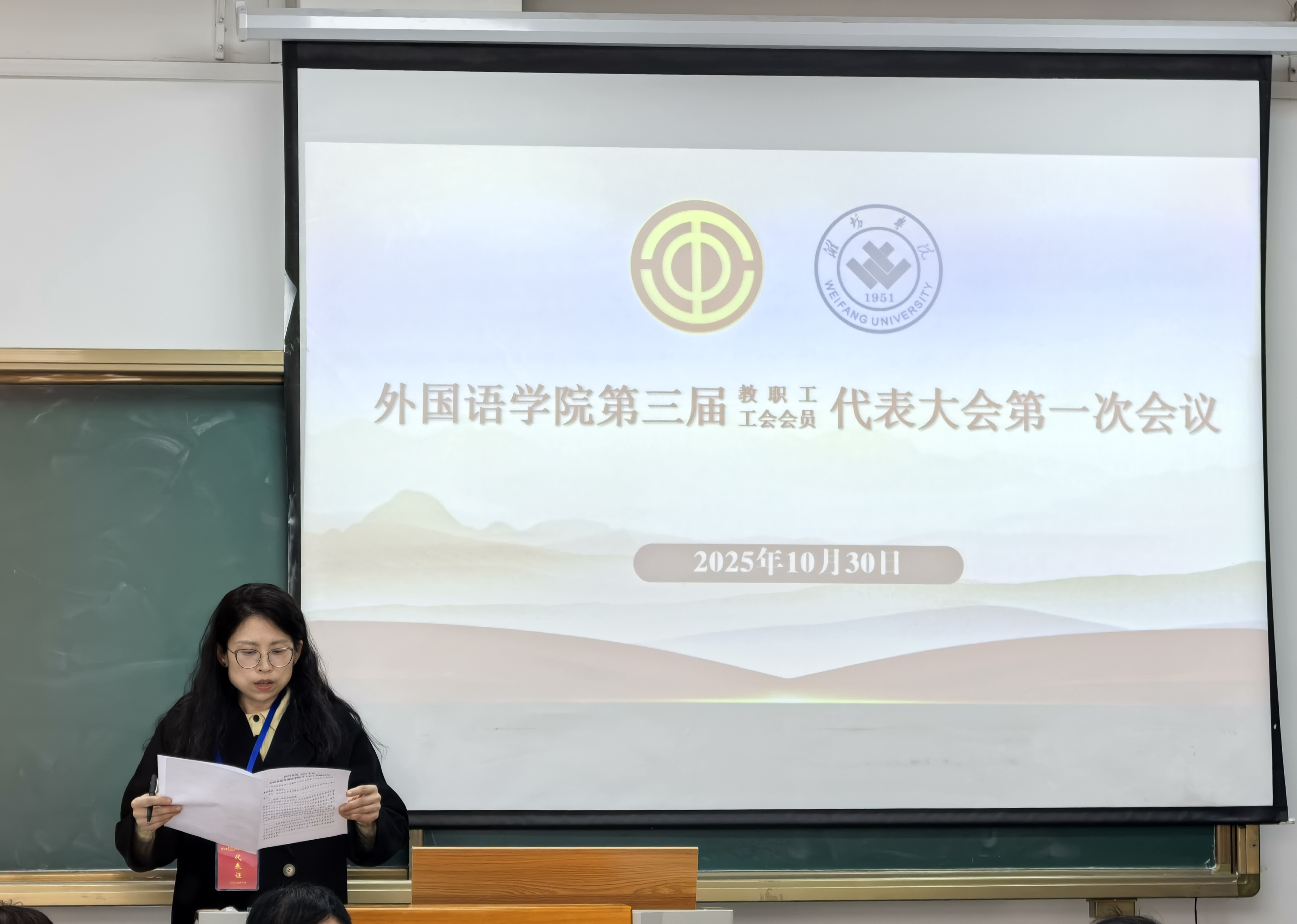 10月30日,我院召开第三届教职工代表大会第一次会议暨第三届工会会员代表大会第一次会议。会议由学院党委书记戴敏主持,40名正式代表参会。