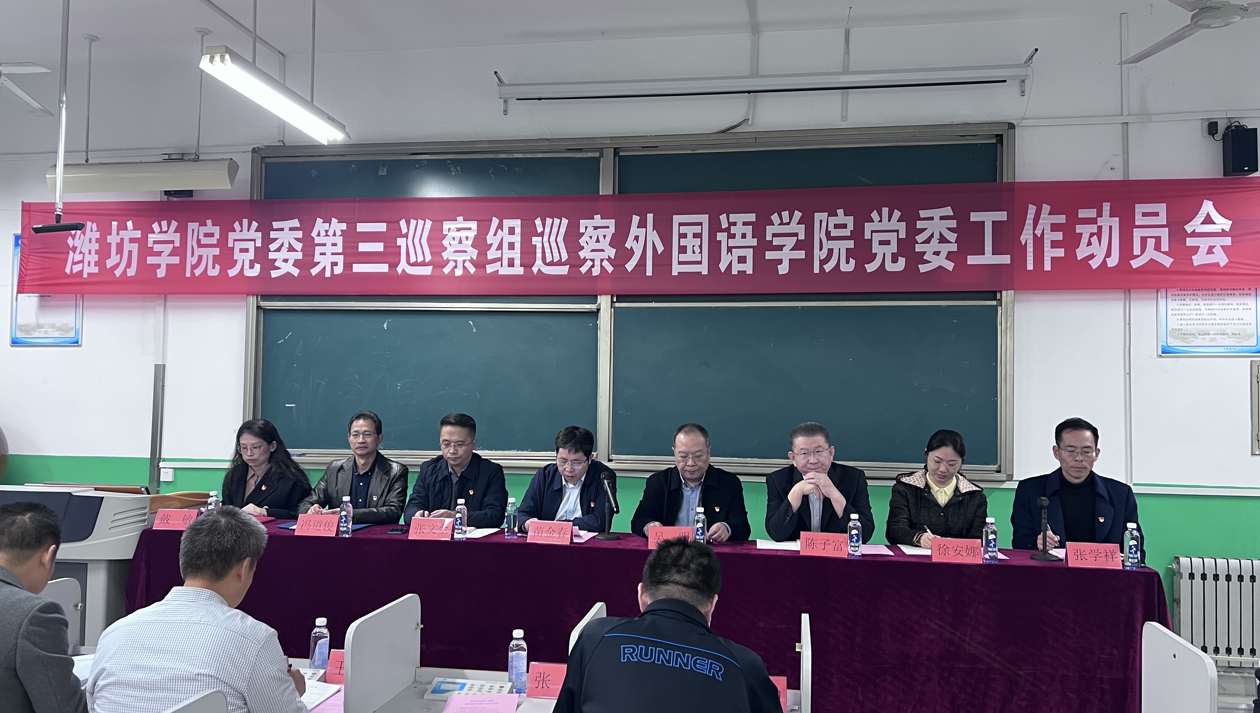 根据学校党委关于巡察工作的统一部署,10月29日,党委第三巡察组巡察外国语学院党委工作动员会召开。学校党委委员、副校长苗金春出席并讲话,学校党委(校长)办公室(巡察办公室)张文全副主任列席会议,党委第三巡察组组长吴明作动员讲话,对做好巡察工作提出要求。副组长及有关同志,外国语学院党委领导班子成员,各党支部书记、各科室负责人及全体教职工、学生代表参加会议。