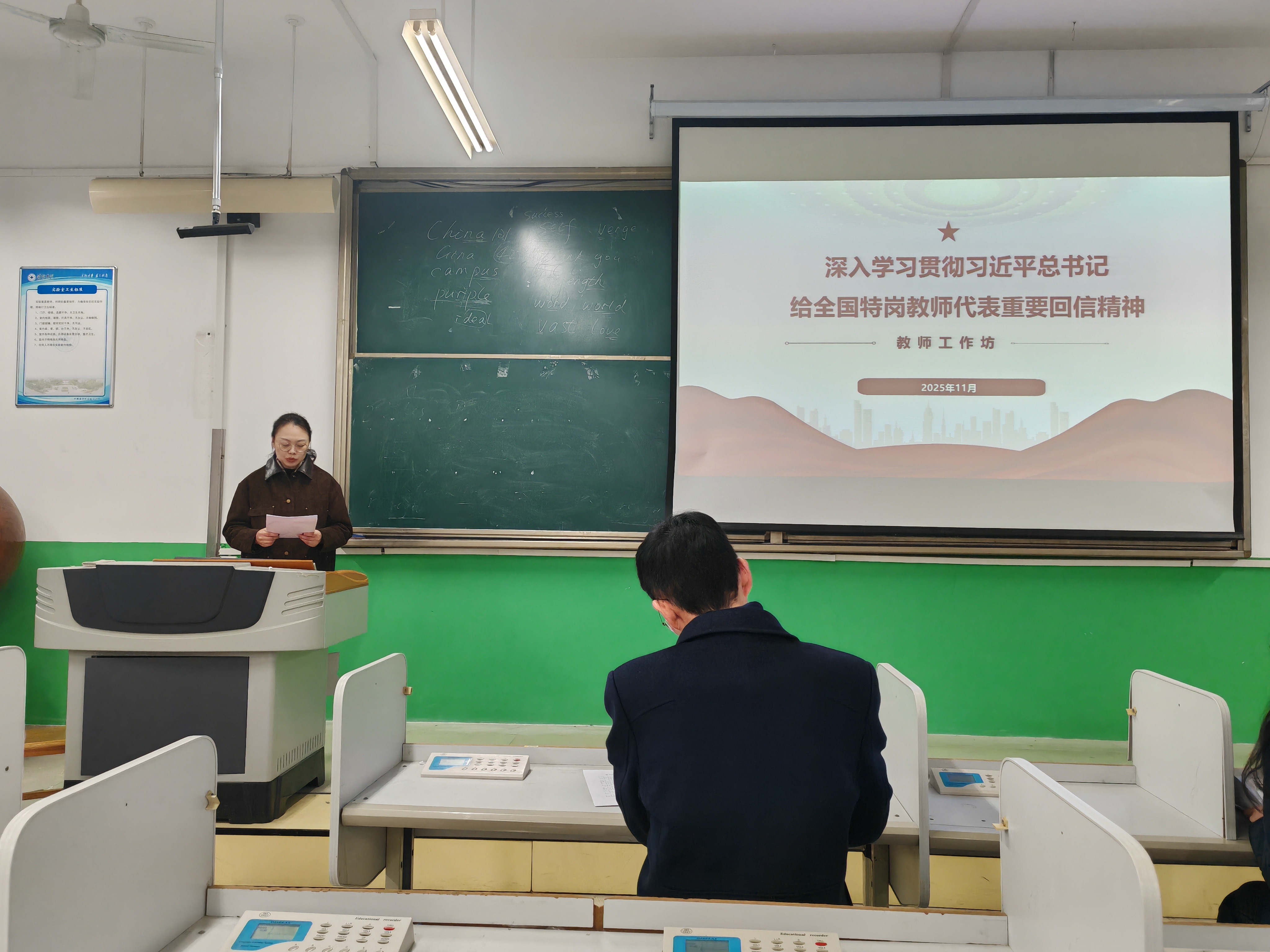 为深入学习贯彻习近平总书记给全国特岗教师代表的重要回信精神,落实学校党委相关工作部署,10月30日,外国语学院教师工作坊组织全体教师开展专题学习活动。