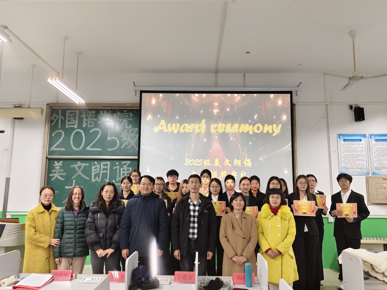 为进一步浓厚校园学术氛围,丰富学生课余文化生活,提升学生英语演讲与语言表达能力,12月10日,我院于3236教室顺利举办2025级英语美文朗诵大赛。学院副院长王珂、英语专业部分教师及2025级英语专业全体学生参加活动。