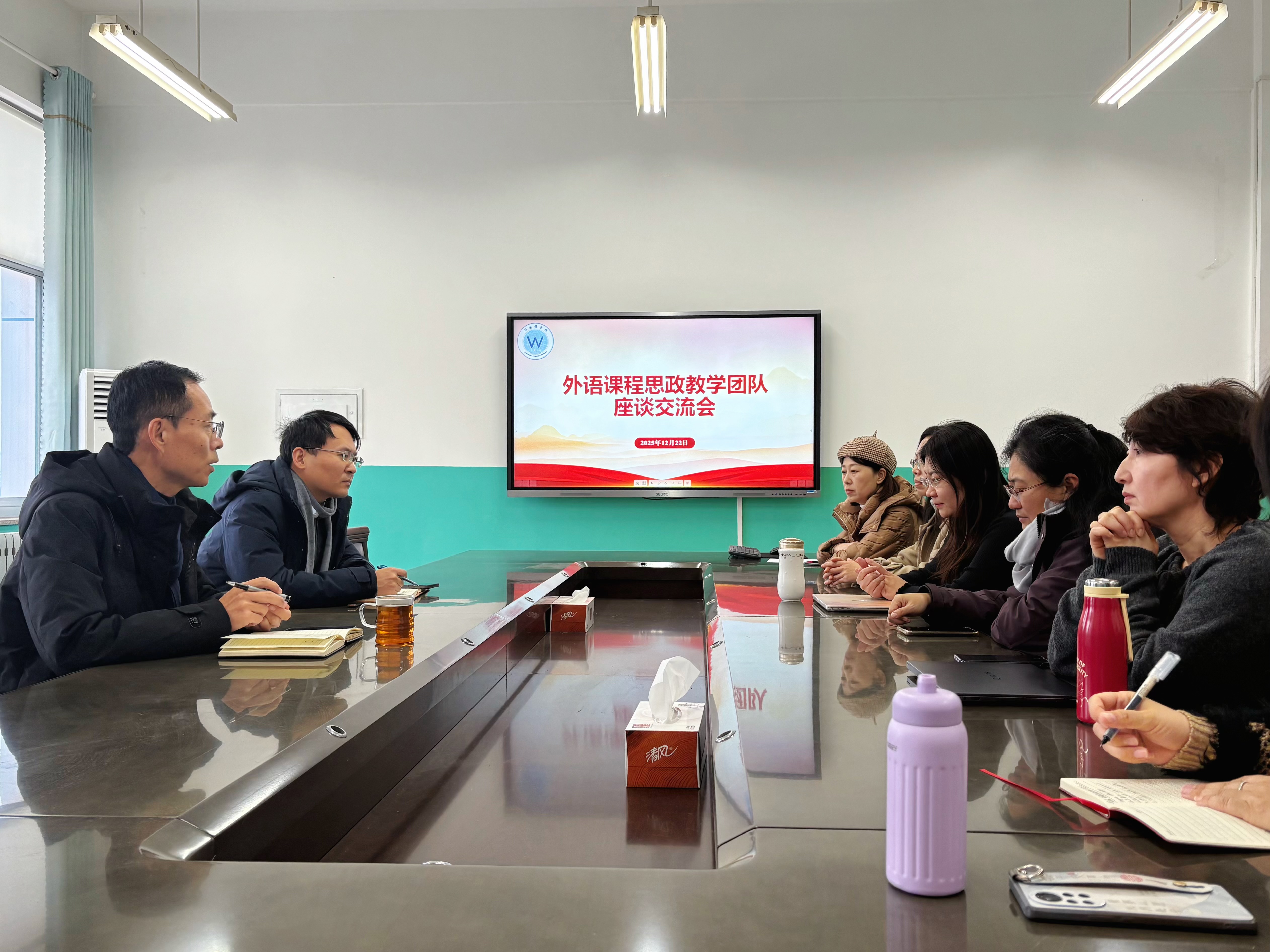 12月22日下午,我院外语课程思政教学团队在3525举行座谈交流会。院长张学祥主持,副院长王珂及团队教师参加。