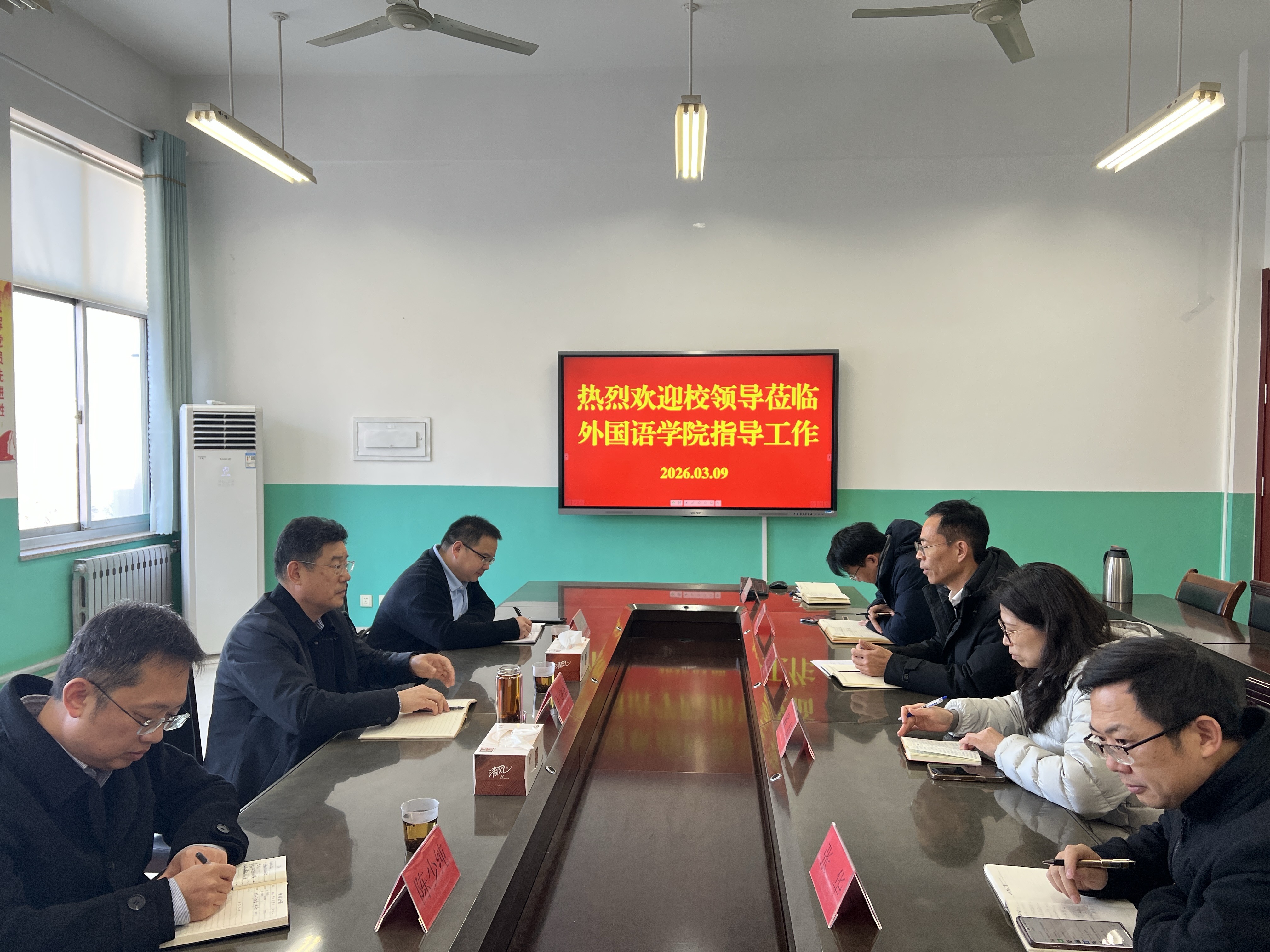 3月9日,学校党委副书记王守全莅临我院检查指导开学工作,学院班子成员及科室负责人参加座谈交流,发展规划与学科建设处处长宋广景、教务处副处长陈少纯陪同。